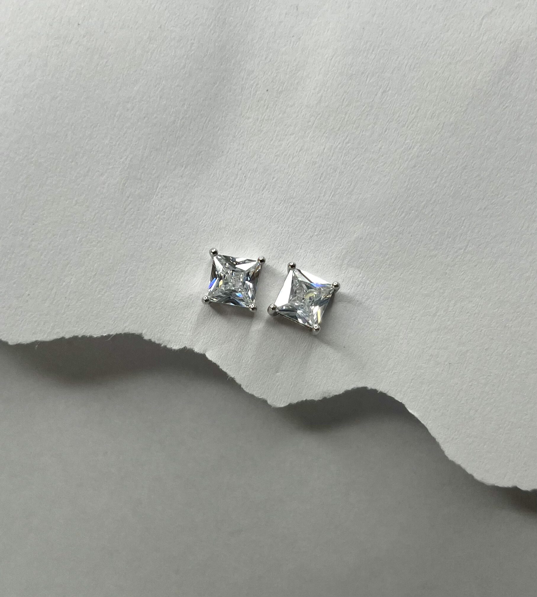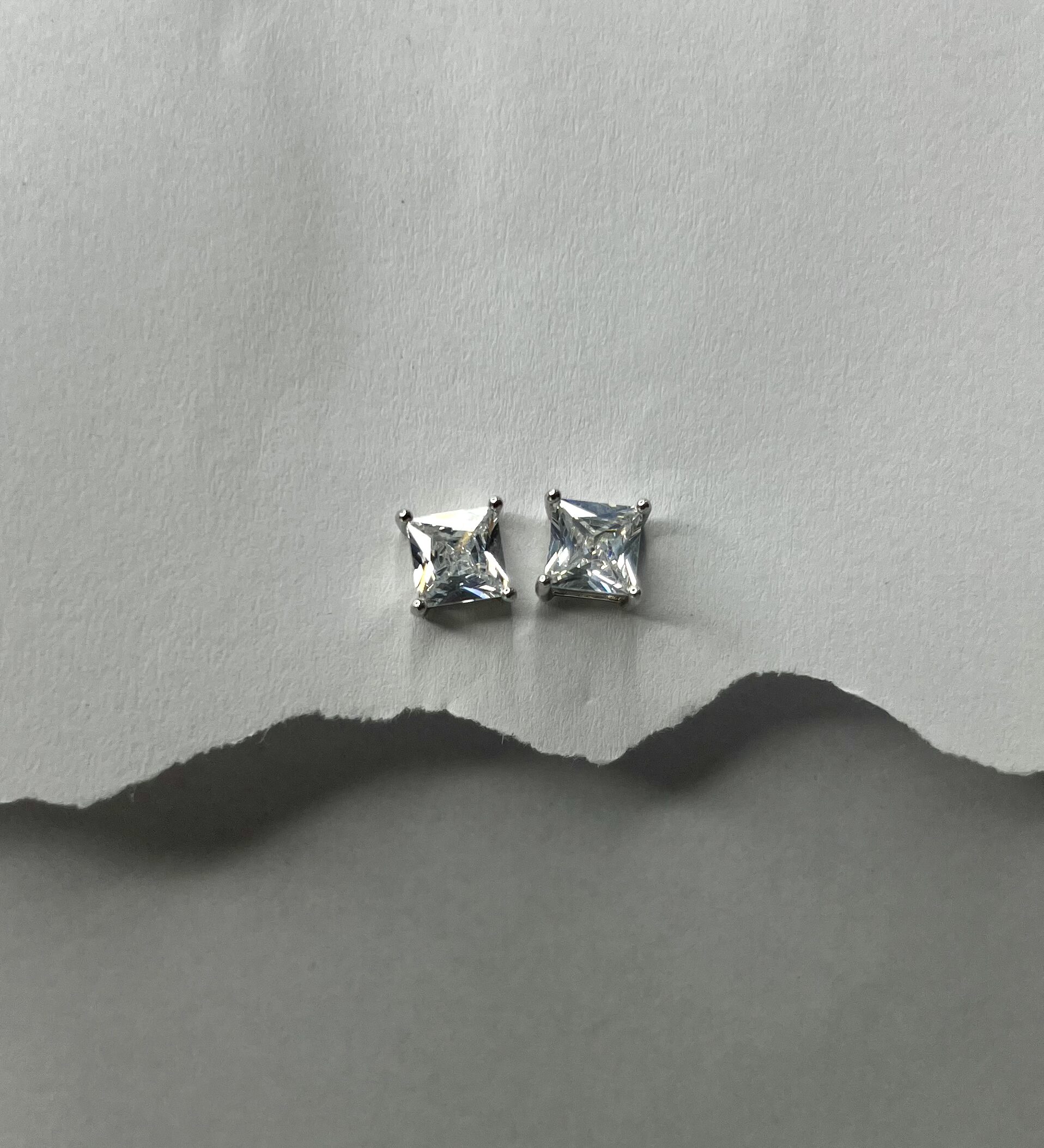 These timeless stud earings showcase dazzling square-cut white stones set in sleek prongs. Their clean, geometric design exudes modern elegance, making them perfect for both everyday sophistication and special occasions.