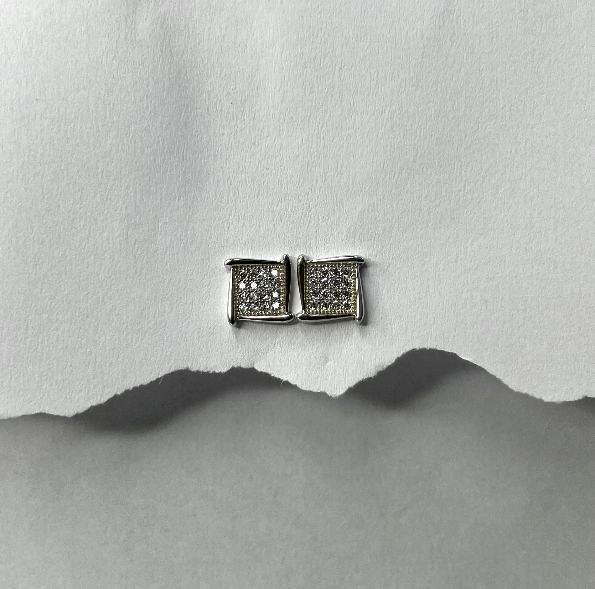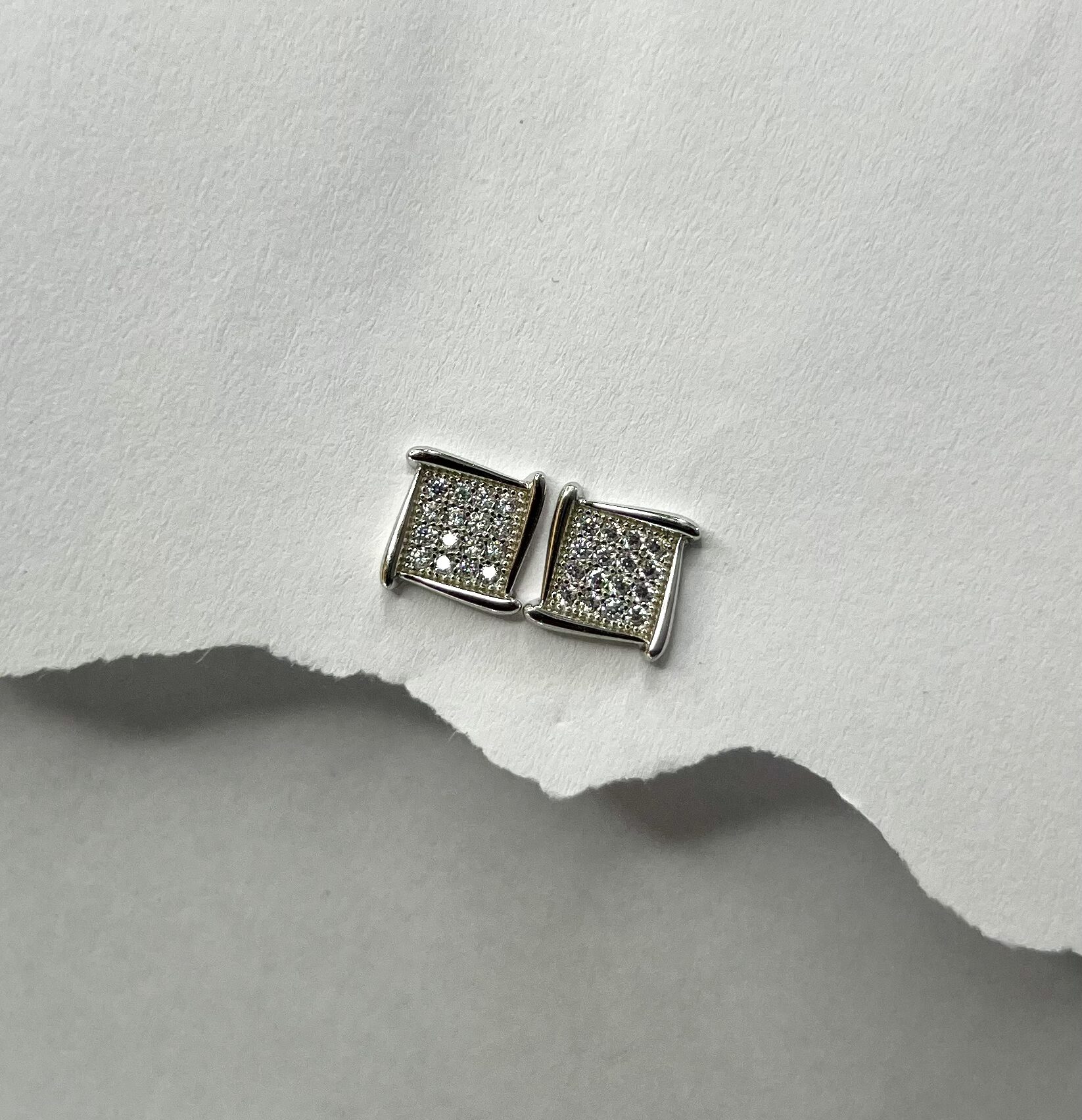 These elegant square stud earrings feature a shimmering cluster of fine white stones set in a sleek silver frame. Their refined sparkle and modern design make them perfect for both daily wear and special occasions.