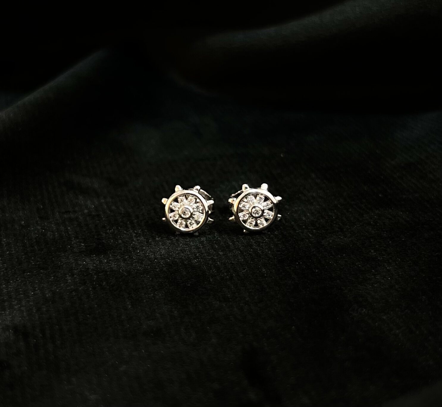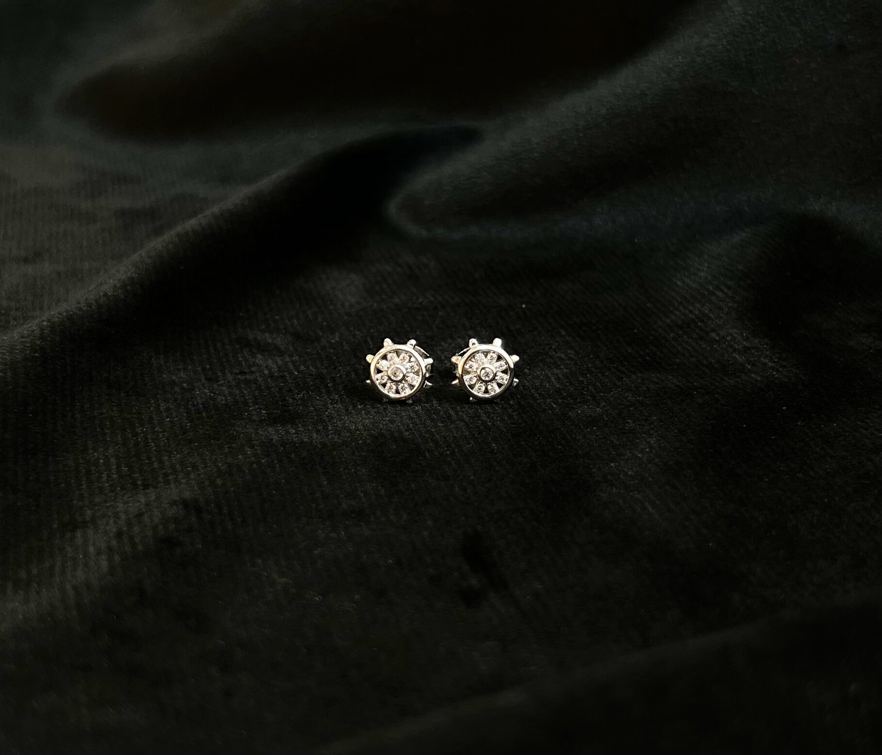 Classic round diamond studs featuring a sparkling cluster center framed with delicate prongs, delivering timeless shine for everyday elegance. Weight- 1.33grams.