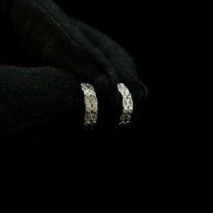 Elegant round studs featuring a sparkling floral-cut-design, perfect for adding a subtle touch of shine to your everyday style.                                                                                                                                                            Weight- 2.46Grams.