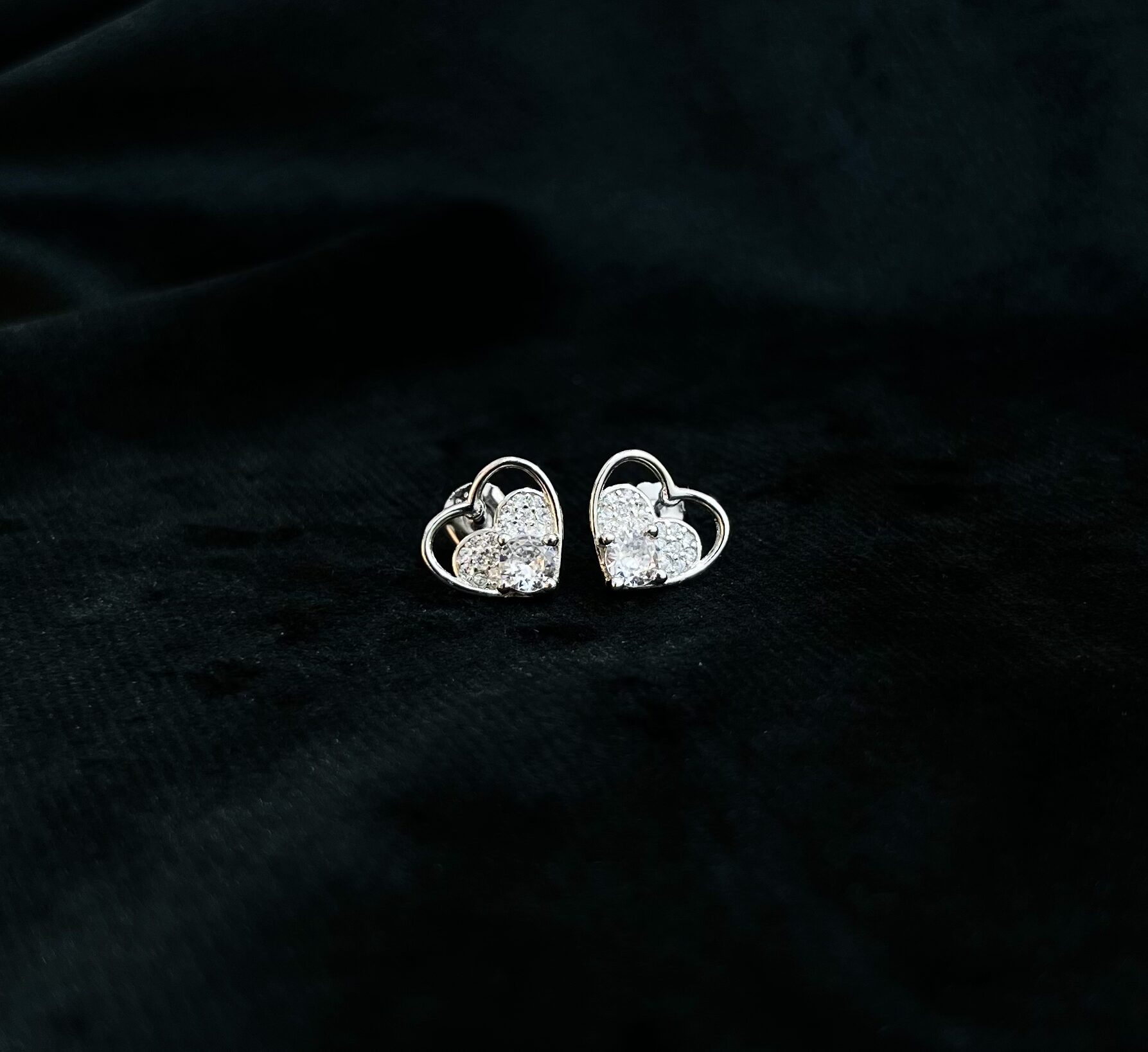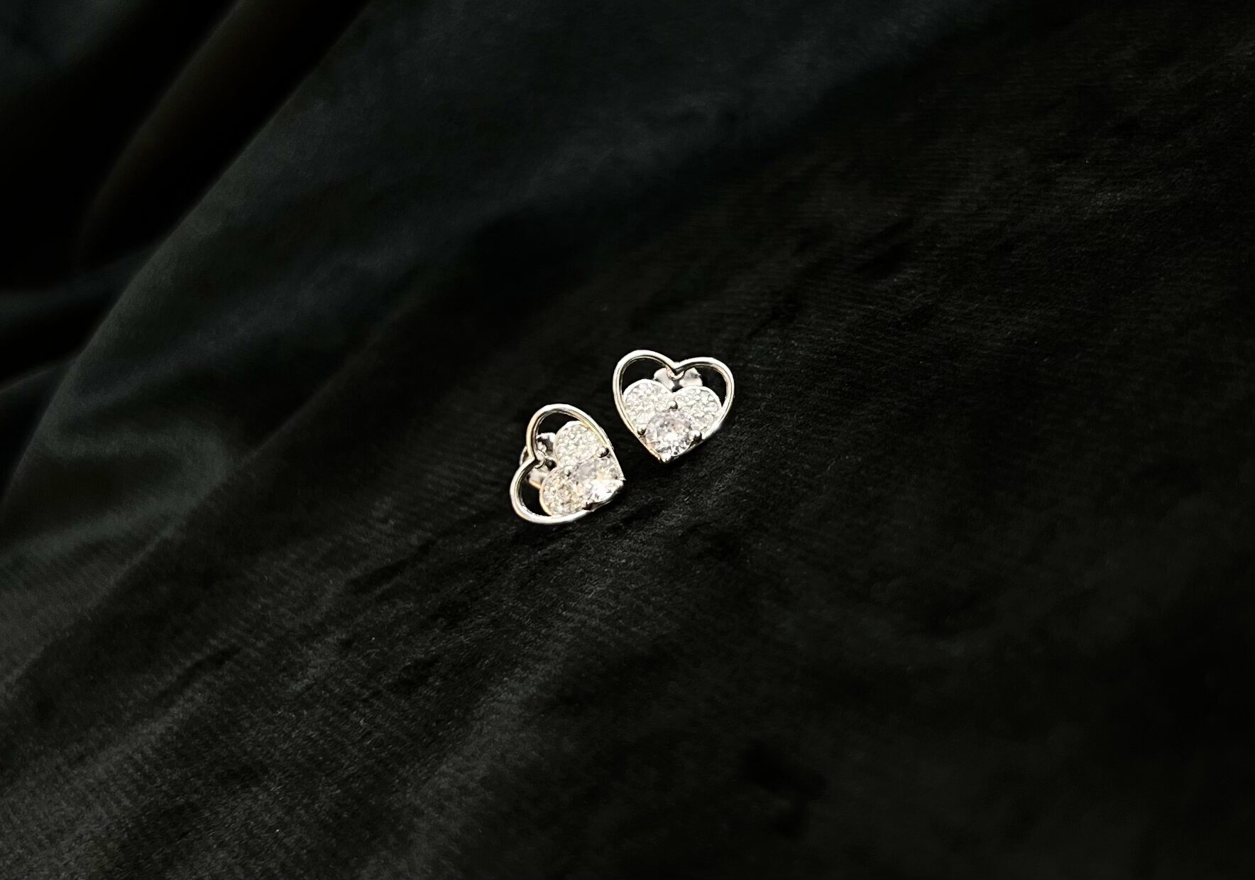 Charming heart-shaped diamond studs crafted with a shimmering cluster center, perfect for adding a sweet yet sophistication sparkle to any look.                                                                                                                              Weight- 2.71grams.