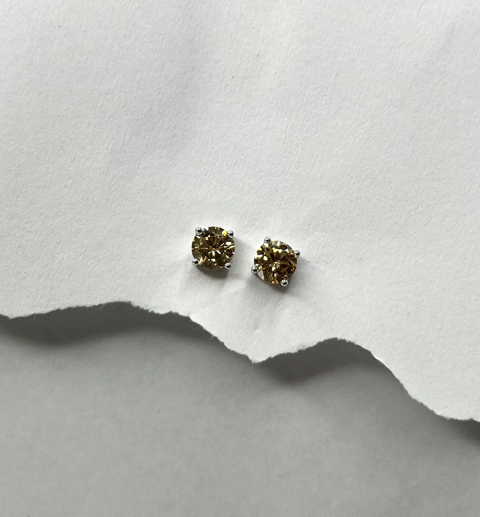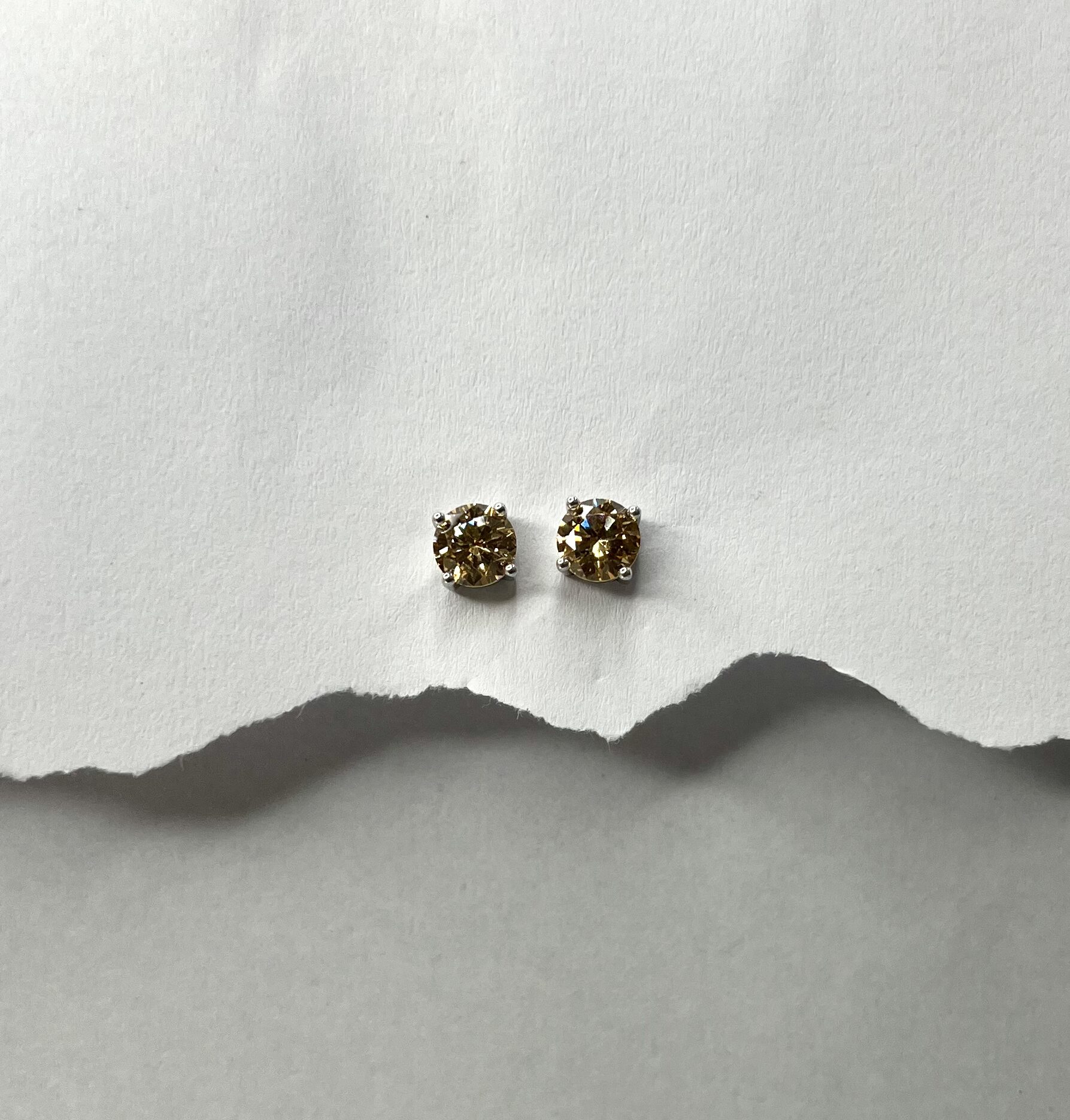 These elegant stud earings brilliant round-cut golden stones set in a sleek silver prongs. Their warm shimmer and classic design bring a touch of refined luxury to any outfit.