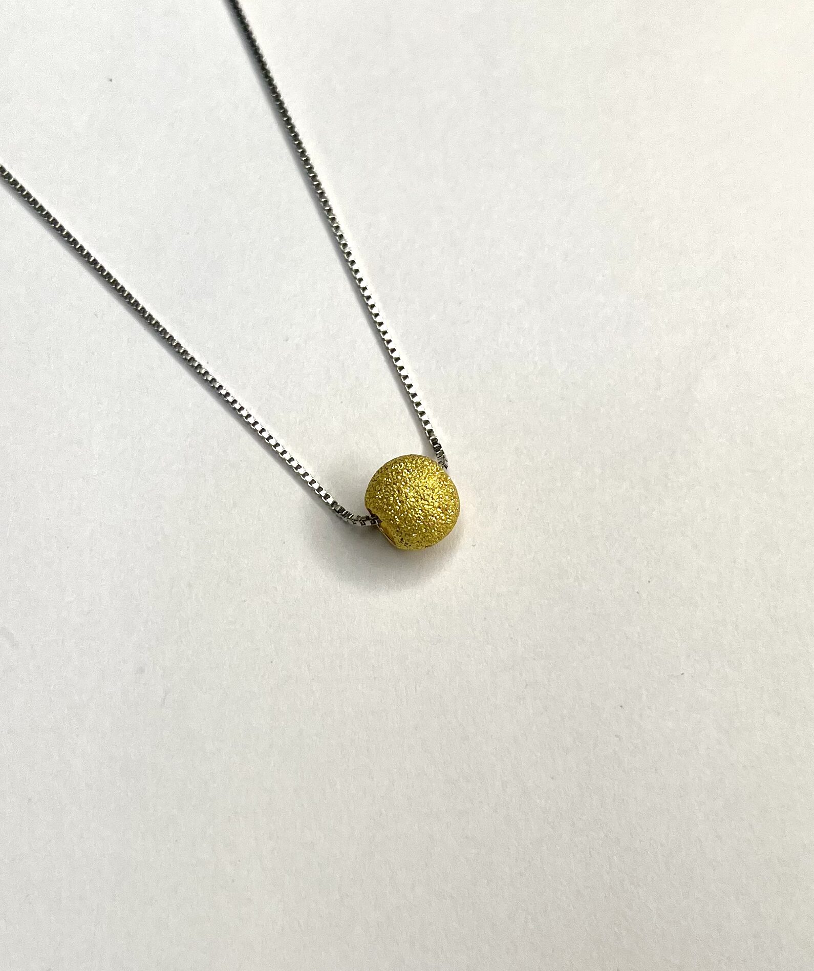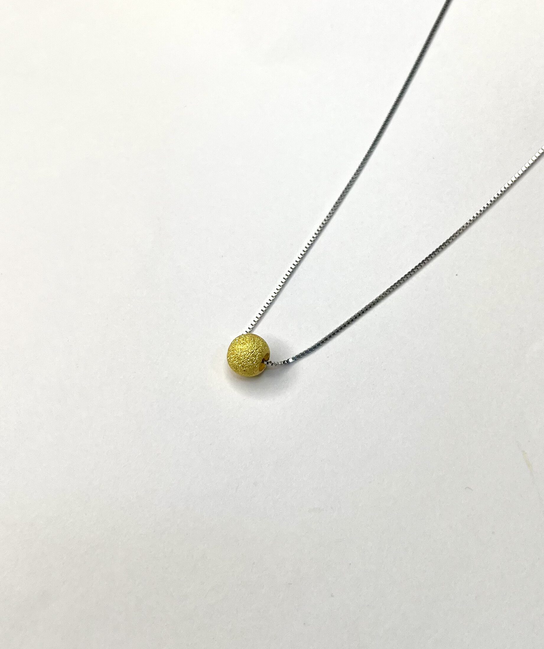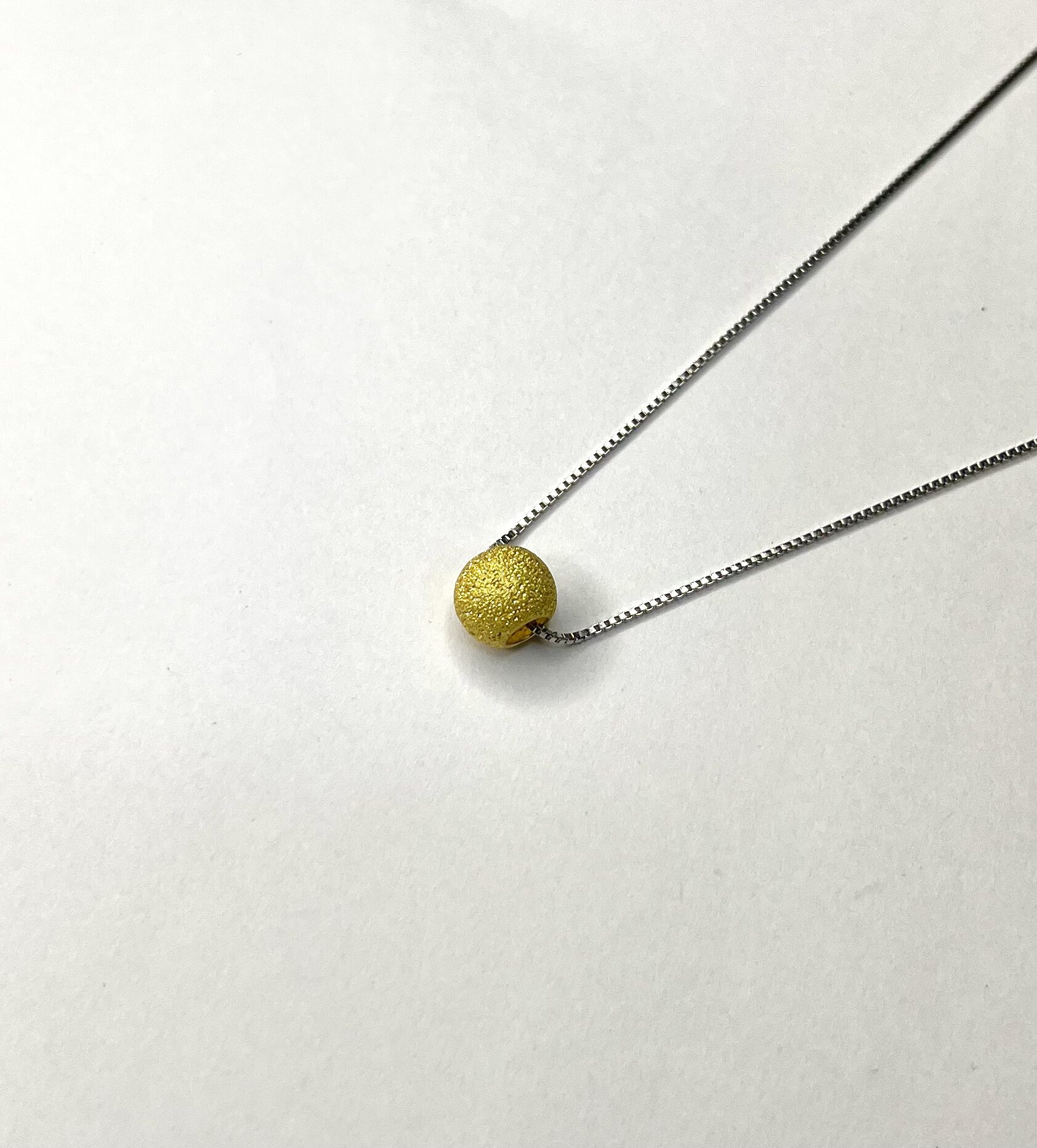 This minimalistic necklace features a delicate chain paired with a textured golden bead pendant. Its simple yet elegant design makes it perfect for everyday wear, adding a subtle touch of charm and sophistication to any outfit. Ideal for those who love timeless and understated style.